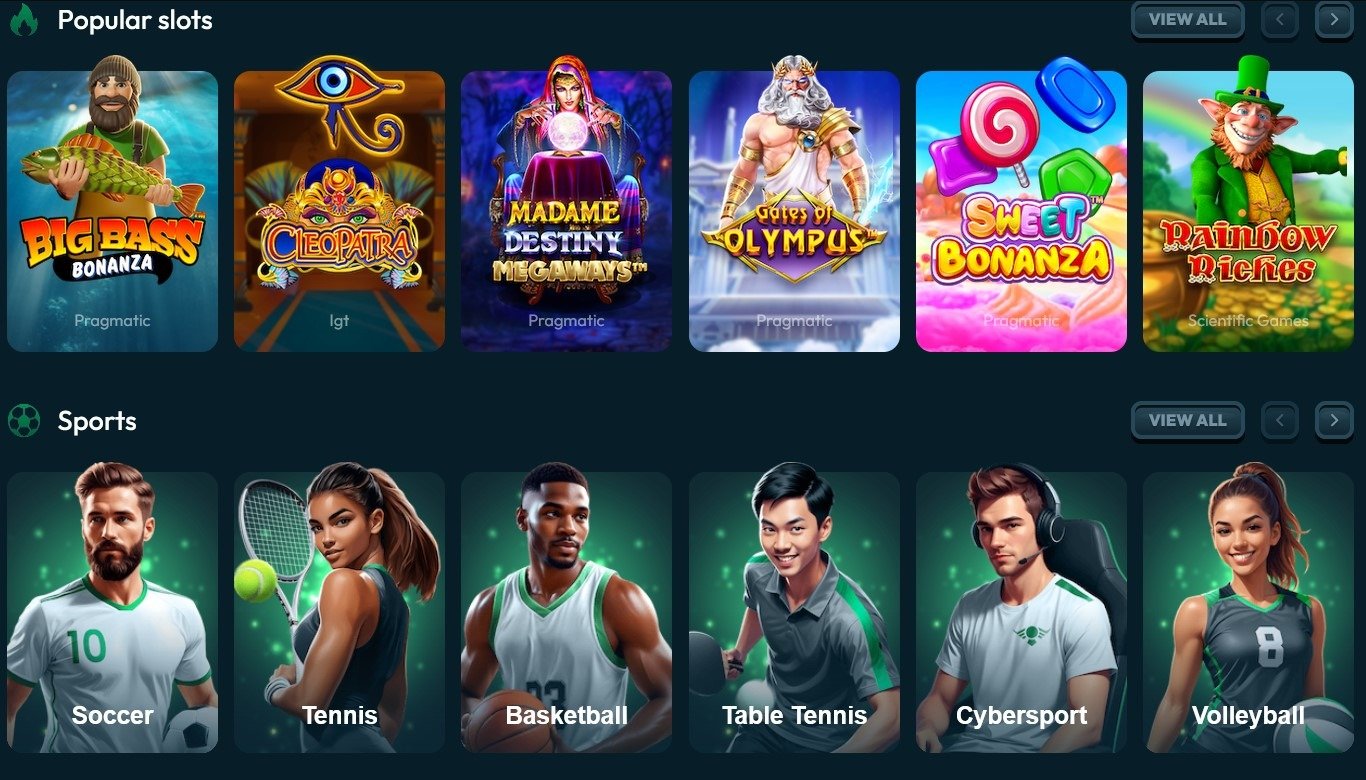 | Types de jeux | Slots, jeux de table, live casino, vidéo poker |