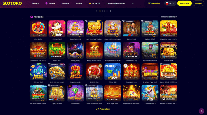 L’originalité de Slotoro casino vient en grande partie de la richesse de son catalogue, alimenté par des développeurs incontournables du secteur comme Pragmatic Play, EvoPlay, Mascot Gaming ou encore 1Spin4Win. Chaque catégorie de jeux de casino propose une expérience différente, qu’il s’agisse de machines à sous classiques à trois rouleaux, de slots modernes pleines de fonctionnalités inédites ou de jeux instantanés pour varier les plaisirs.