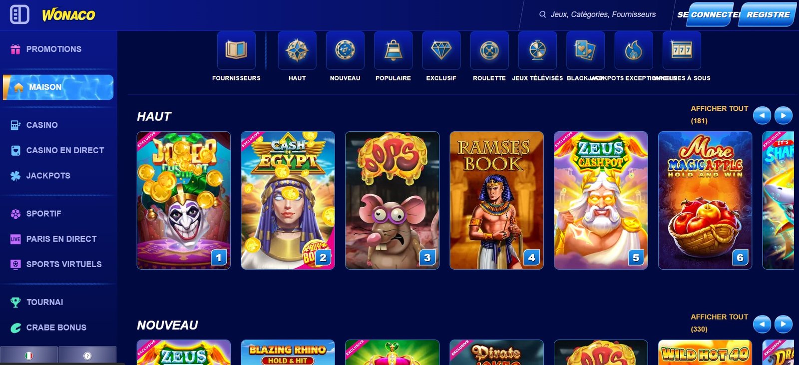 Impossible de passer à côté de la quantité impressionnante de jeux proposée sur Wonaco Casino. La sélection dépasse largement les standards habituels avec plus de 17 000 références, tous styles confondus : machines à sous, jeux de table, jackpots progressifs, titres exclusifs ou encore live casino. Cette diversité plaît autant aux collectionneurs invétérés qu’aux amateurs qui aiment varier leur expérience sans jamais tomber dans la routine.